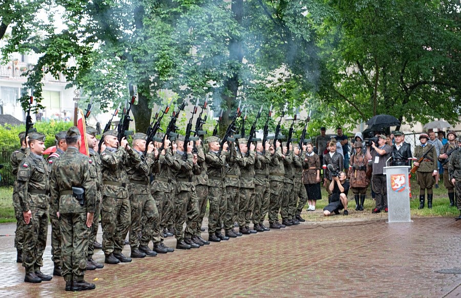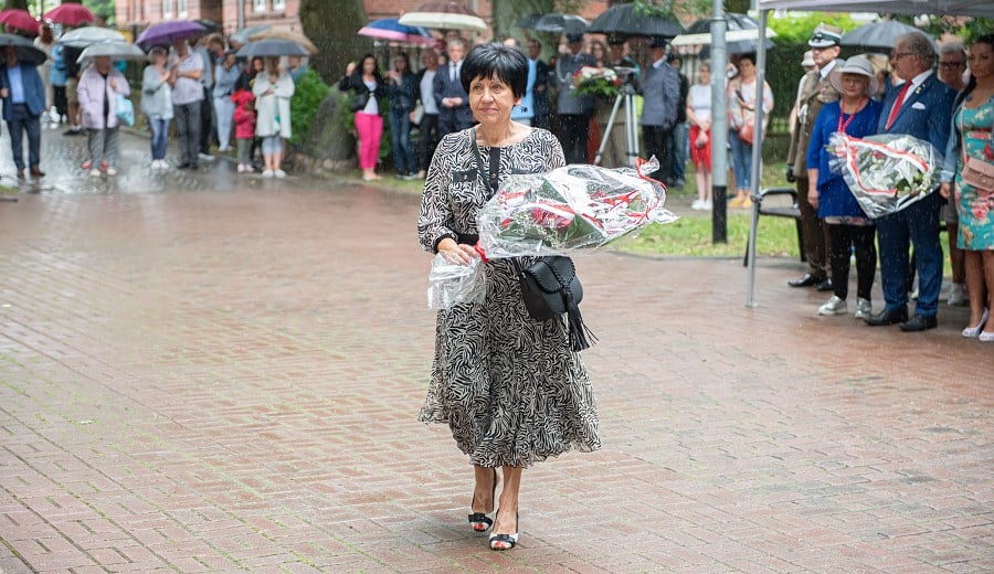 Wójt Gminy Świeszyno Pani Ewa Korczak, przy dźwięku syreny alarmowej oddała razem z pozostałymi zgromadzonymi hołd Powstańcom Warszawskim.