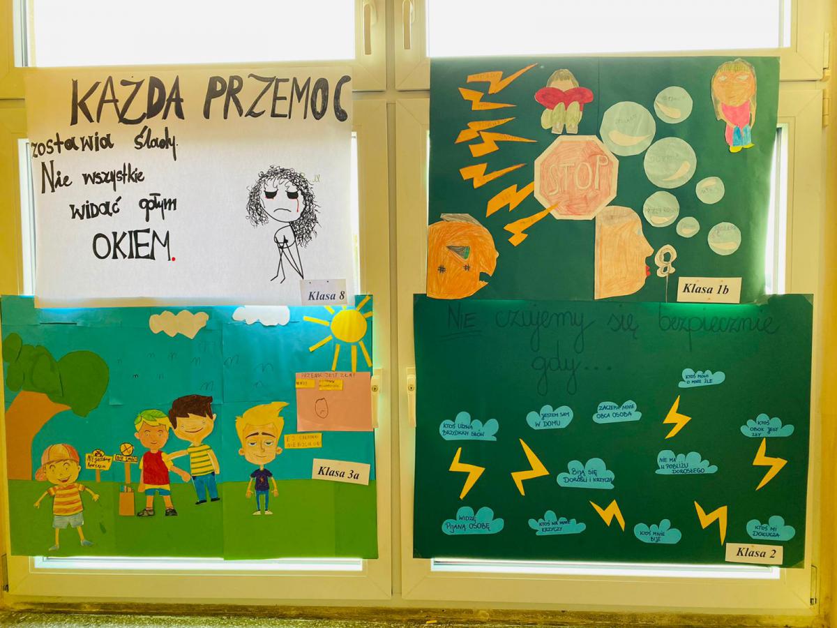 W związku z tym, miniony tydzień upłynął w Szkole Podstawowej w Świeszynie pod hasłem „STOP PRZEMOCY!” Dzieci z oddziału przedszkolnego oraz starsi uczniowie w ramach akcji wykonali przepiękne plakaty tematyczne, mające na celu uwrażliwienie na problem przemocy. Prace wyeksponowane zostały na holu szkolnym. Wychowawcy natomiast przeprowadzili szereg zajęć dotyczących wypracowywania skutecznych sposobów zapobiegających przemocy oraz na temat prawidłowej komunikacji interpersonalnej.